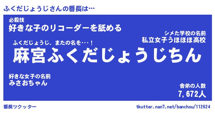 | ヘコむあだ名 | 『ふくもー』『なまこ酢』『ふくを』 |