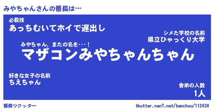 | ヒーロー風カッコイイあだ名 | 『スーパーミヤチャン』『黄金騎士ミヤ』 |