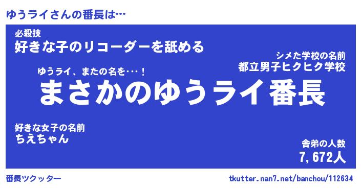 | 意味不明あだ名 | 『ペロリンゆうライ』『永久保存ゆうライ』 |