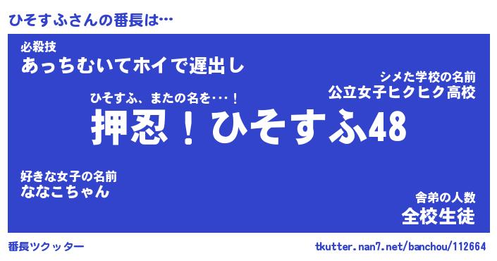 | 意味不明あだ名 | 『ペロリンひそすふ』『永久保存ひそすふ』 |