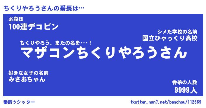 | ヒーロー風カッコイイあだ名 | 『スーパーチクリヤロウ』『天弓騎士チク』 |