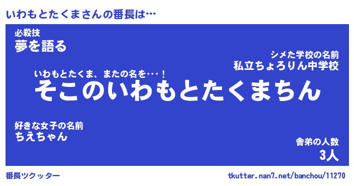 | 肩書あだ名 | 『いわもとたくま御曹司』 |