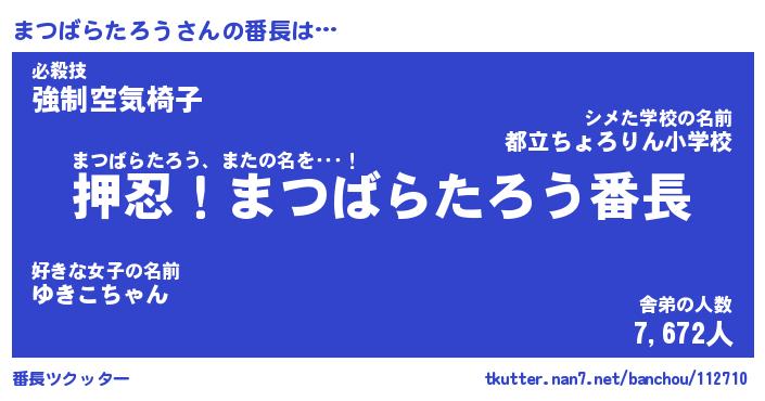 | 2回繰り返すあだ名 | 『まつまつ』『ままつつ』『ぬらぬら』 |