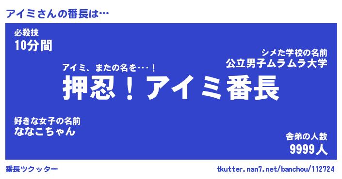 | 肩書あだ名 | 『アイミ社長』『アイミ総理大臣』 |