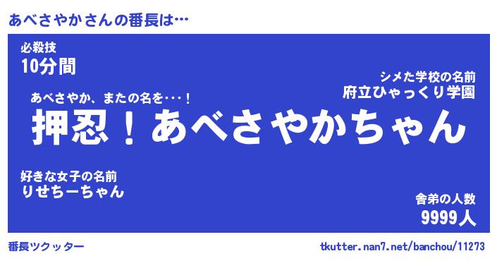 | ファンタジー風あだ名 | 『アベフェル』『エターナルアベサヤカー』 |