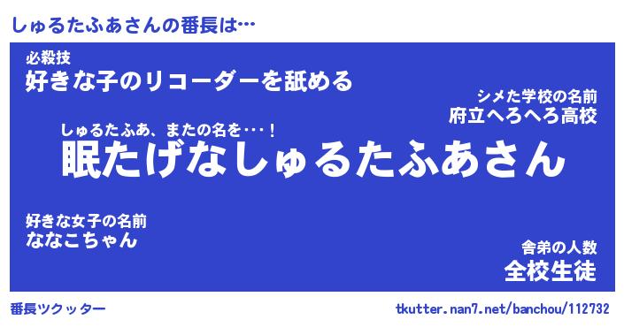 | 肩書あだ名 | 『しゅるたふあCEO』『しゅるたふあ団長』 |