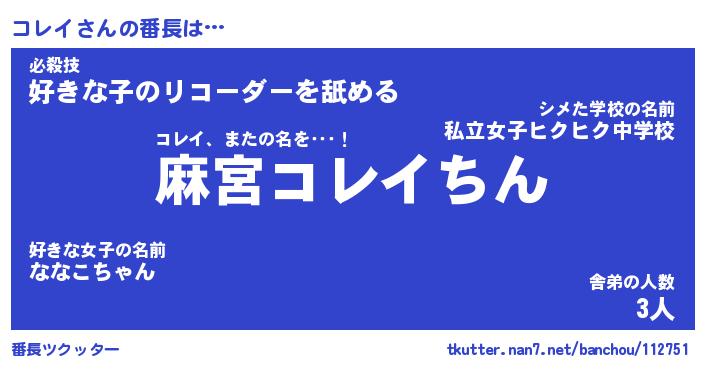 | 意味不明あだ名 | 『ペロリンコレイ』『コレイフォーエバー』 |