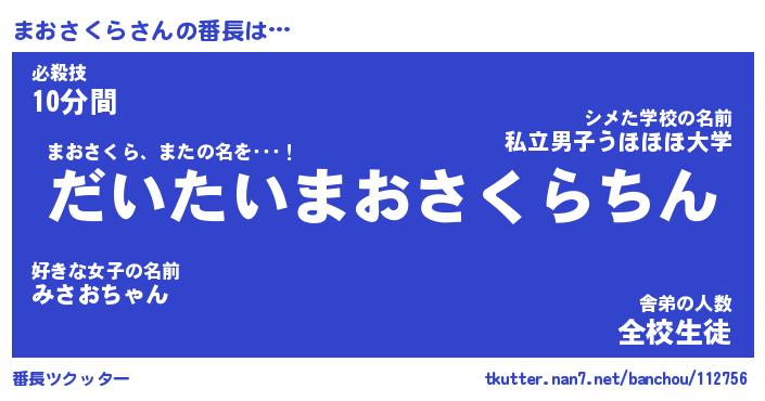 | 伝説のあだ名 | 『不死鳥のスナイパーまおさくら』 |