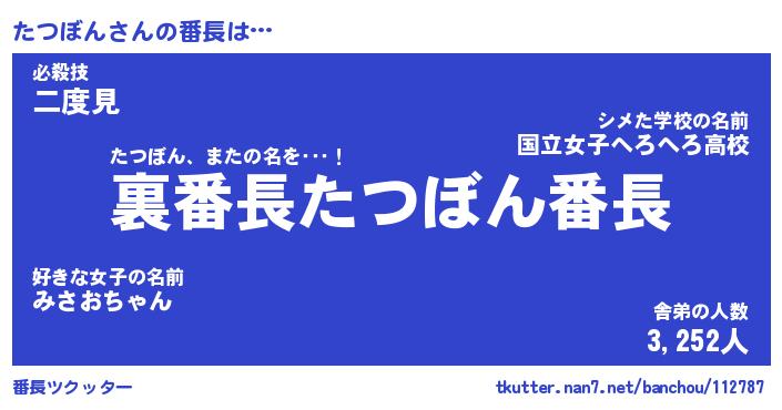 | 2回繰り返すあだ名 | 『たつたつ』『たたつつ』『ぬれぬれ』 |