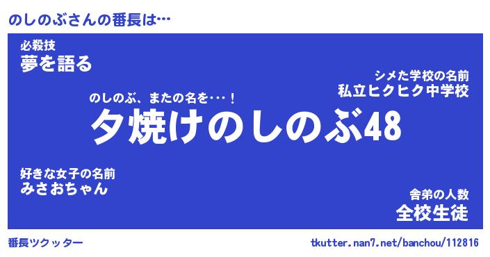 | 肩書あだ名 | 『のしのぶ社長』『のしのぶ大統領』 |
