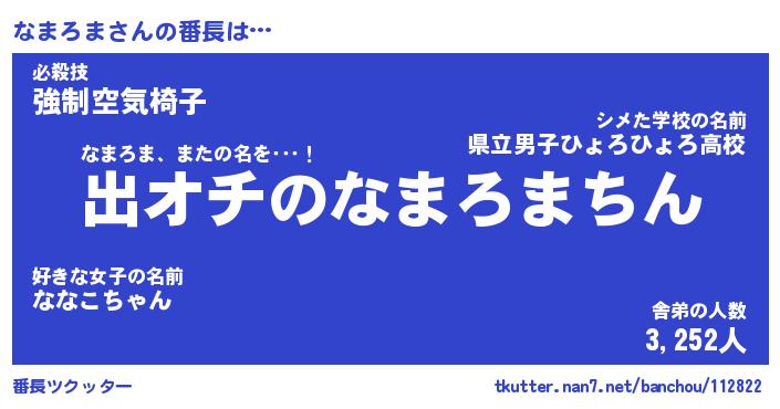| ヒーロー風カッコイイあだ名 | 『スーパーナマロマ』『暗黒騎士ナマ』 |
