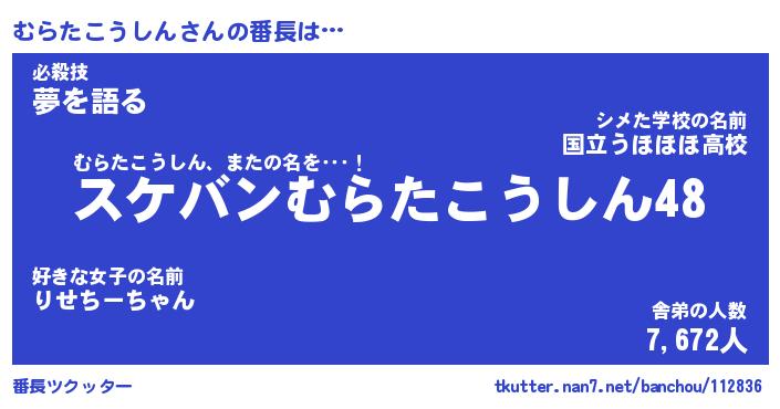 | 伝説のあだ名 | 『不死鳥のスナイパーむらたこうしん』 |