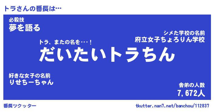 | ヘコむあだ名 | 『トラもー』『豆乳』『トラを』 |