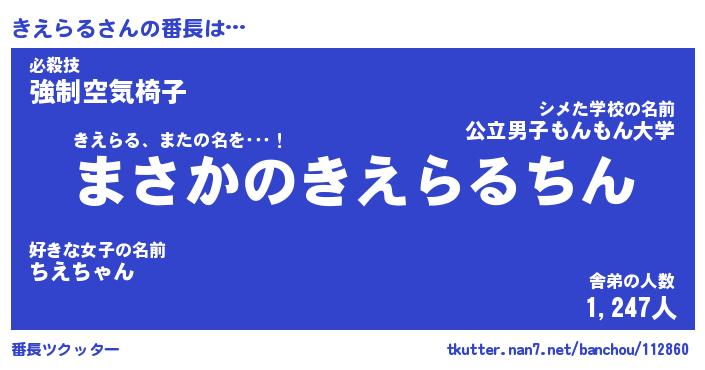 | 伝説のあだ名 | 『伝説のスナイパーきえらる』 |