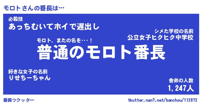 | ヒーロー風カッコイイあだ名 | 『スーパーモロト』『ウルトラモロトマン』 |