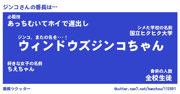 | ヒーロー風カッコイイあだ名 | 『スーパージンコ』『ウルトラジンコマン』 |