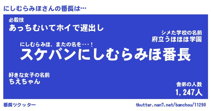 | ポケモン風あだ名 | 『ニシチュウ』『ニシムダネ』 |