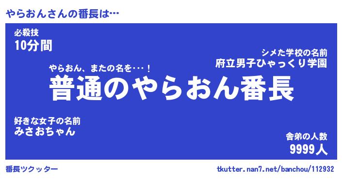 | 伝説のあだ名 | 『不死鳥のスナイパーやらおん』 |