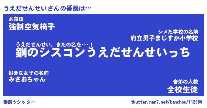 | ポケモン風あだ名 | 『ウエチュウ』『ウエダダネ』 |