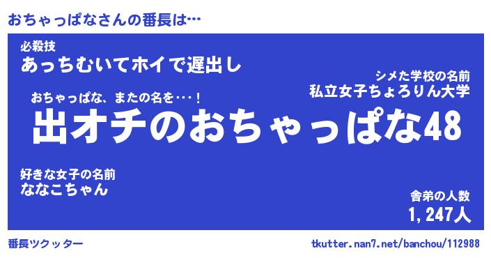 | 肩書あだ名 | 『おちゃっぱな店長』『おちゃっぱな団長』 |