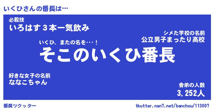 | ヒーロー風カッコイイあだ名 | 『スーパーイクヒ』『ウルトラいくひマン』 |