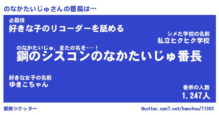 | 伝説のあだ名 | 『封印されしスナイパーのなかたいじゅ』 |