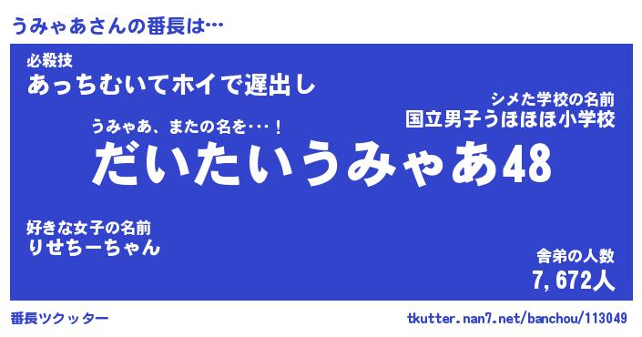 | ポケモン風あだ名 | 『ウミチュウ』『ウミャダネ』 |