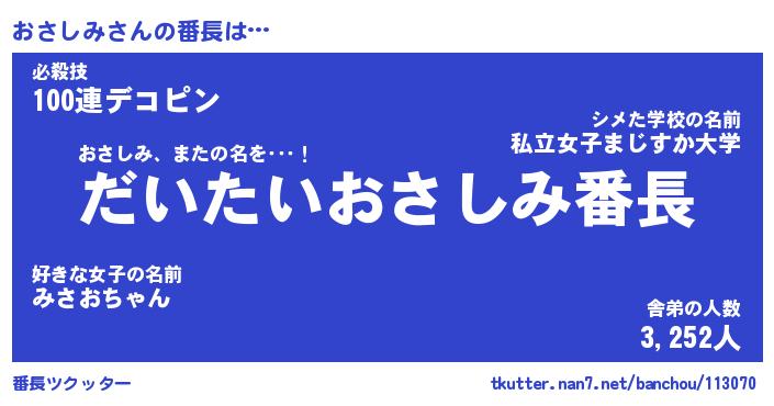 | 肩書あだ名 | 『おさしみ店長』『おさしみ総理大臣』 |