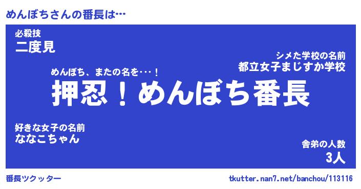 | 欧米人風あだ名 | 『マイケルめんぼち』『ウサインめんぼち』 |