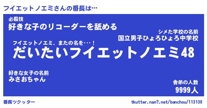 | ピコ太郎風あだ名 | 『フコ三郎』『ピフ五郎』『フイ史郎』 |