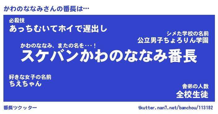 伝説のあだ名 | 『不死鳥のスナイパーかわのななみ』 |