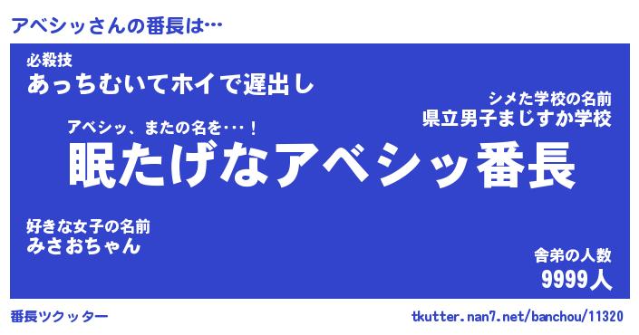 | 意味不明あだ名 | 『ペロリンアベシッ』『永久保存アベシッ』 |