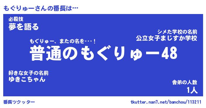 | 伝説のあだ名 | 『不死鳥のスナイパーもぐりゅー』 |