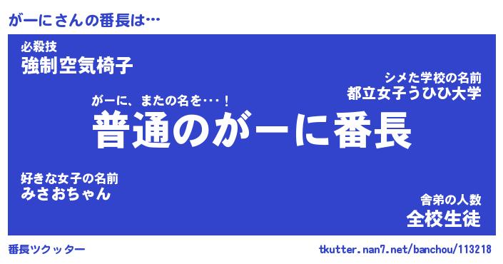 | 意味不明あだ名 | 『ペロリンがーに』『がーにフォーエバー』 |