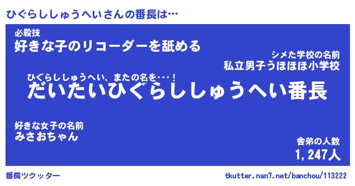 | 意味不明あだ名 | 『ペロリンひぐらししゅうへい』 |