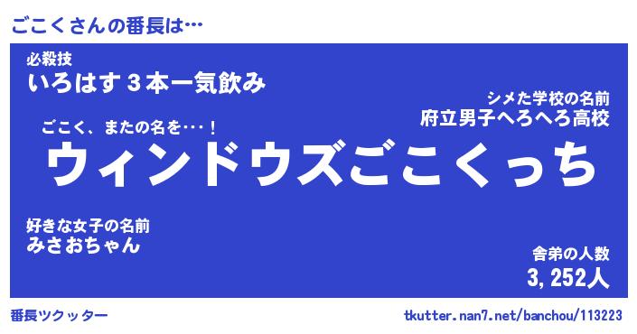 | ヒーロー風カッコイイあだ名 | 『スーパーゴコク』『ウルトラごこくマン』 |