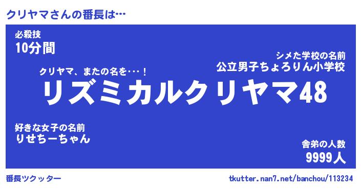 | ヒーロー風カッコイイあだ名 | 『スーパークリヤマ』『天弓騎士クリ』 |