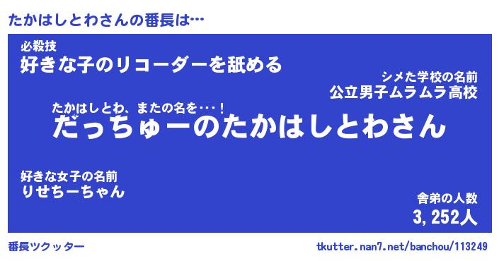 | 肩書あだ名 | 『たかはしとわ御曹司』 |