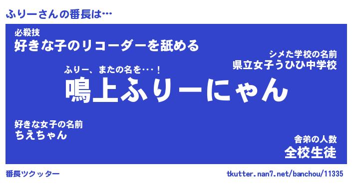 | 意味不明あだ名 | 『ペロリンふりー』『ふりーフォーエバー』 |