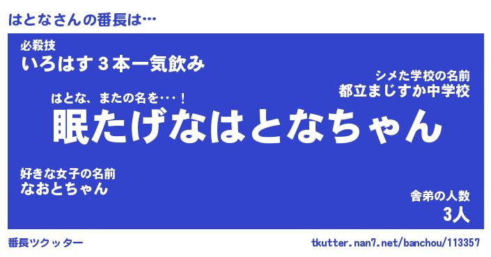 | ヒーロー風カッコイイあだ名 | 『スーパーハトナ』『ウルトラはとなマン』 |