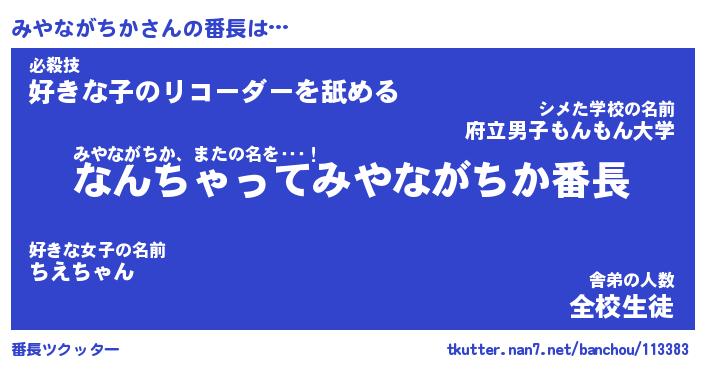 | 伝説のあだ名 | 『伝説のスナイパーみやながちか』 |