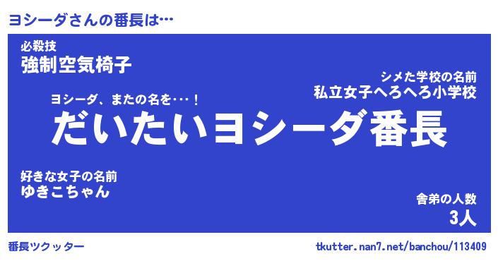 | ヘコむあだ名 | 『ヨシにゅー』『牛乳』『ヨシぷりん』 |