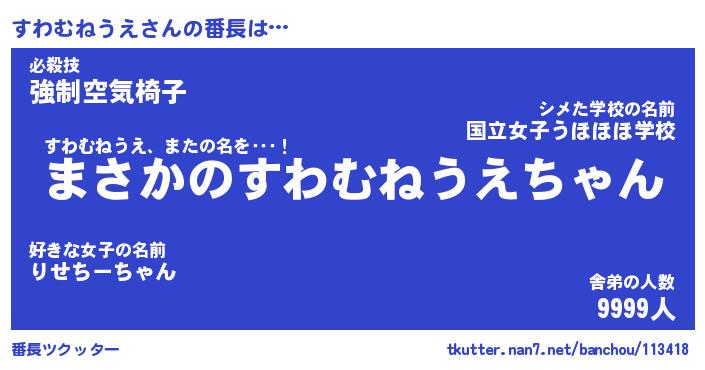 | 男性向けラノベタイトル風あだ名 | 『すわむねうえの憂鬱』 |
