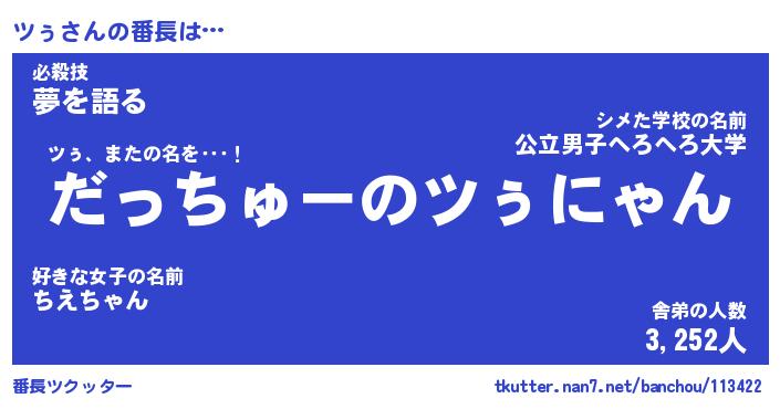 | 猫の名前『ツぅにゃん』性別『オス』 |