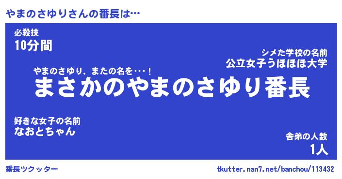 | 伝説のあだ名 | 『伝説のスナイパーやまのさゆり』 |