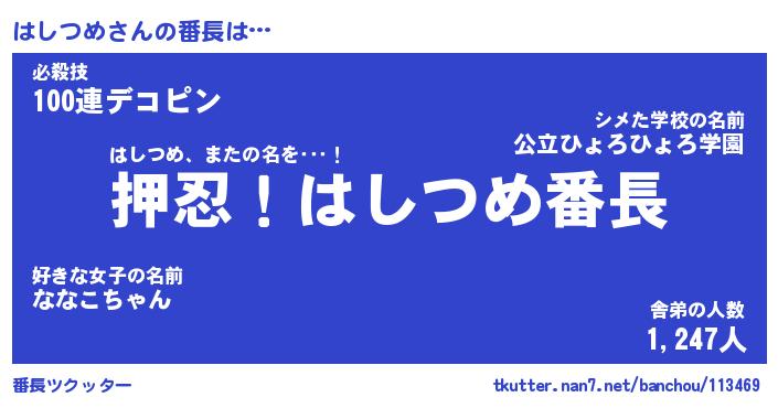 | ヒーロー風カッコイイあだ名 | 『スーパーハシツメ』『銀牙騎士ハシ』 |