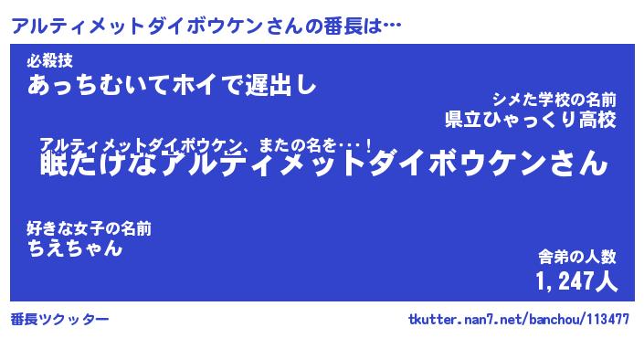 | ヒーロー風カッコイイあだ名 | 『スーパーアルティメットダイボウケン』 |