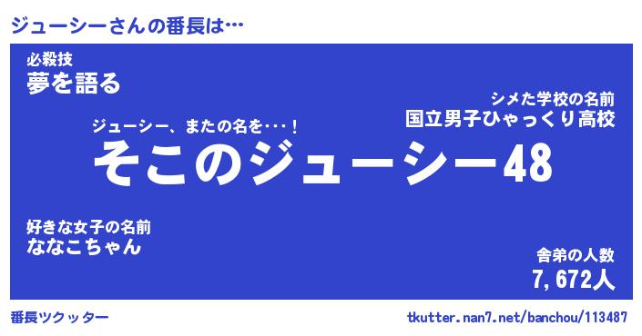 | ヘコむあだ名 | 『ジュもー』『なまこ酢』『ジュ太郎』 |