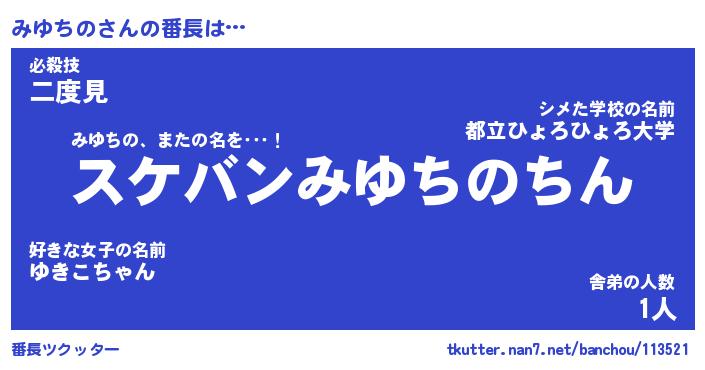 | 伝説のあだ名 | 『不死鳥のスナイパーみゆちの』 |