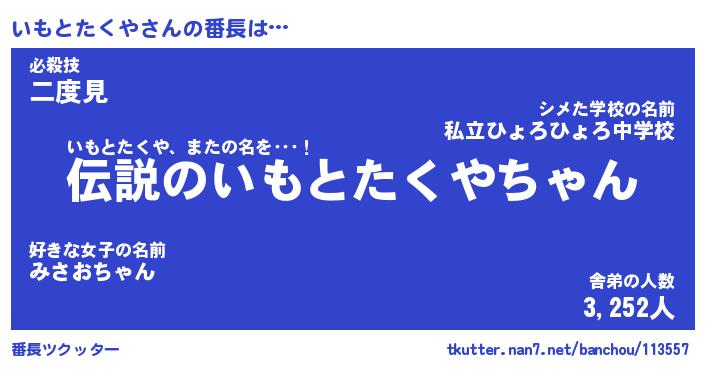 | ポケモン風あだ名 | 『イモチュウ』『イモトダネ』 |